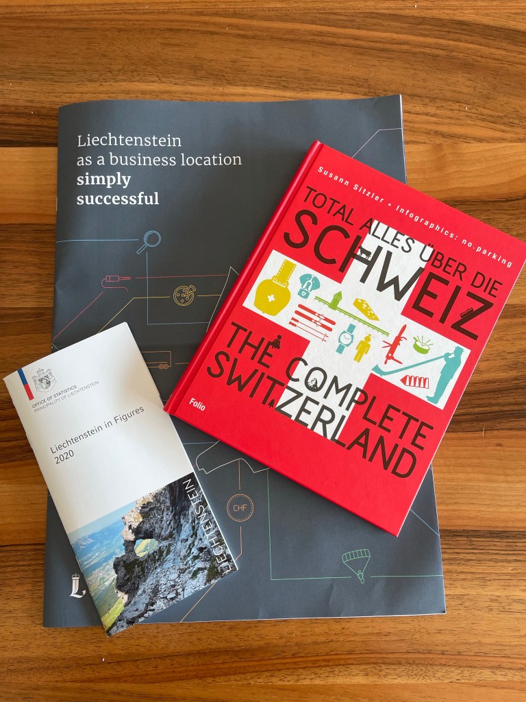 I haven’t opened the red book yet, but the pamphlet includes such vital information as how many bee colonies there are in the country (985), and the fact that there were 0 traffic fatalities in 2018.